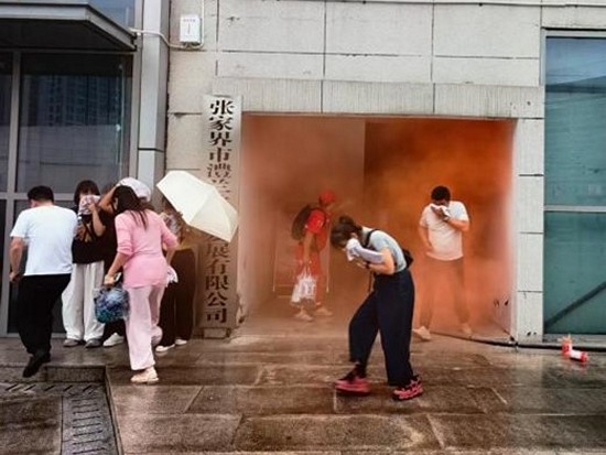 随着一声尖锐的“起火了”,消防应急演练骤然进入白热化阶段。现场浓烟迅速升腾弥漫,参演人员保持高度警觉,严格按照逃生规范,用湿毛巾捂住口鼻,压低身形,沿着安全通道弓腰疾行,在引导员的指挥下,以最快速度、最有序的队列完成撤离,整个过程紧张而有条不紊,将应急逃生的要点展现得淋漓尽致。