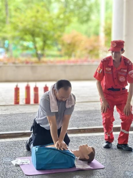 • 生命救援争分夺秒:疏散演练与急救训练同步展开,员工们化身“急救先锋”,通过心肺复苏实操,精准完成意识判断、胸外按压、人工呼吸等急救步骤;